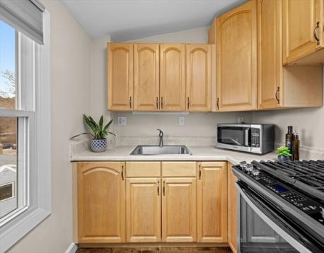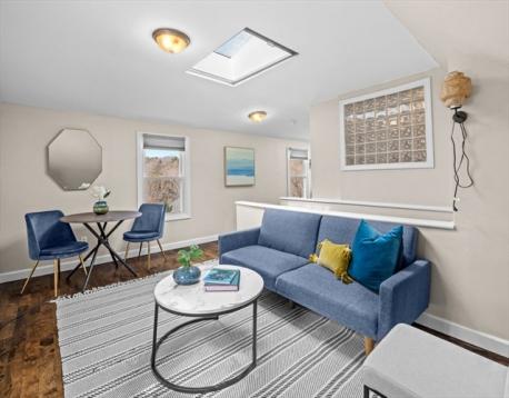 Great JP location! Top floor unit, enveloped by sunlight in every direction. Close to the Arboretum, Forest Hills train station, restaurants, shopping and so much more. Tucked away on a quiet street, this sun filled unit with an open floor plan is move-in ready. The unit has beautiful hardwoods throughout, stainless steel appliances, and two large skylights in the living area. Good sized bedroom with a large tiled bathroom. There is a washer/dryer in the building and has common front yard space. An additional storage closet on the second floor (bikes, skis, golf clubs, etc.) sits conveniently next to the unit door for easy storage. Low condo fees and taxes. An easy walk to this vibrant JP neighborhood. Close to Longwood Medical and to the Riverway Greenways. Bonus! No parking permit required on Jamaica Street. JP living under $430K in a serene and private setting.