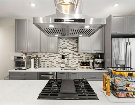 Welcome to this beautifully maintained 2-bedroom, 2-bath condominium in Dorchester, MA. Built in 2019, this 1,224 sq. ft. home features an open floor plan with abundant natural light and a seamless flow throughout, creating a bright and inviting atmosphere.The chef-inspired kitchen boasts a large island, stone countertops, shaker cabinets, a stylish backsplash, stovetop, and island range hood, making it perfect for cooking, entertaining, or simply gathering with friends and family.The primary suite offers a walk-in closet and private ensuite bath with a walk-in shower, while the second bedroom is positioned on the opposite side of the home for privacy, making it ideal for guests, a home office, or a personal retreat.Enjoy your private balcony, perfect for morning coffee or evening relaxation, and the convenience of a single garage space. Located in a prime location, this modern condo combines style, comfort, and convenience, providing the perfect balance of contemporary living.