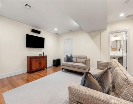 Situated on a coveted corner lot with 3 exposures, the property features a lush private garden with a blue stone patio and 2 adjacent off-street parking spaces. Originally a church built of beautiful sandstone brick, this unique home boasts classic entries, an open staircase, slate roof, high ceilings, and 2 fireplaces. Oversized windows flood an ideal open floor plan with natural light. Enjoy a private deck off the primary suite with views of downtown Boston. Nearby amenities include vibrant nightlife, restaurants and shopping, beaches, parks, 2 MBTA train stations, and bus routes for travel to city destinations. This exceptional and well maintained home blends history, design, tranquility and proximity to enjoyable activities and residential conveniences.