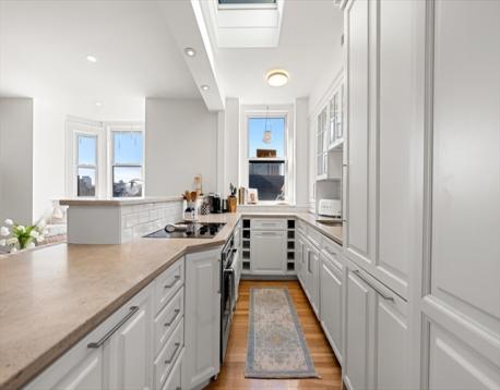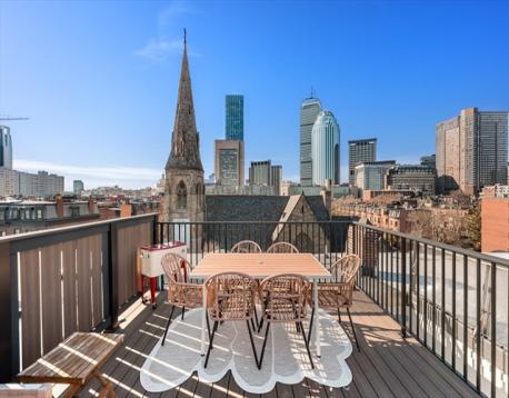 Perched in a classic brownstone on Columbus Avenue in the heart of the South End, this beautifully updated two-bedroom penthouse offering an exceptional blend of light, scale, and iconic Boston views. The sun-drenched home features an open-concept layout with oversized windows framing striking views of the Back Bay skyline and a historic cathedral below. A designer kitchen offers white cabinetry, stone countertops, integrated appliances, and a skylight that fills the space with natural light. Well-proportioned bedrooms and a renovated bath with clean, modern finishes and vaulted ceilings create a comfortable and elevated retreat. The showpiece of the home is the newly completed private roof deck. Expansive and beautifully finished, it offers multiple seating and dining areas with sweeping panoramic views. Located just moments from the South End’s renowned restaurants, this penthouse presents a rare opportunity to own a turn-key home in one of Boston’s most sought-after neighborhoods.