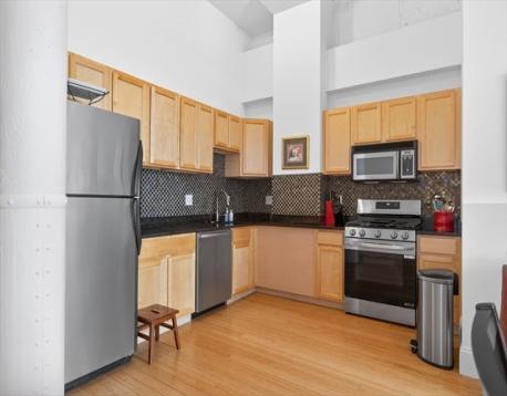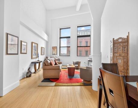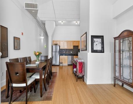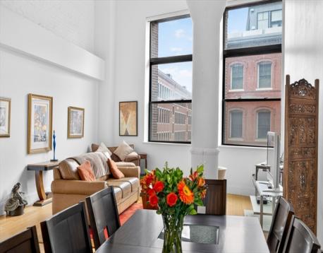 A rare offering at the coveted Harrison Lofts, this sophisticated residence - once the industrial stables of Jordan Marsh & Company - offers a striking blend of history and modern sophistication in the heart of the South End’s vibrant SoWa district. Soaring 22-foot ceilings make a striking first impression, with the opportunity to create a two-level urban sanctuary, without additional HOA cost. Sunlight pours through oversized southeast-facing windows, illuminating an expansive open-concept living, dining, and kitchen space designed for effortless hosting and entertaining. Natural bamboo floors ground the home in warmth, while the oversized bedroom retreat features a custom-built walk-in closet with in-unit laundry and exceptional storage. This professionally managed building also offers a stunning common roof deck with grill, wet bar, and sweeping Boston skyline views. Complete with central AC, deeded garage parking, and additional storage. This is true city living, at its finest.