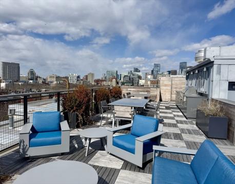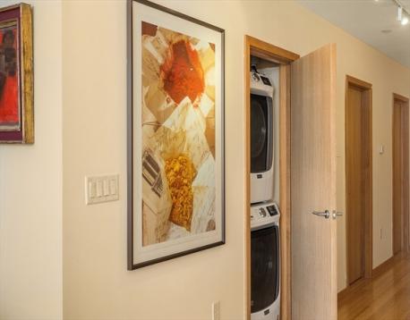 Expansive & open south-facing expanded 1-bedroom at the Harrison Lofts in the heart of SoWa. Bedroom accommodates a king bed and opens to a study and spacious walk-in closet. Pet-friendly loft features industrial elements & luxury finishes. Large windows allow natural light to fill the space. Ample storage in the chef’s kitchen with custom cabinetry, Viking pro range, restaurant quality hood vent, extra capacity 4-drawer Sub-Zero, stone countertops, and an oversized island. Very large common roof deck with extraordinary urban views has grill, sink, & counter space, and is ideal for get-togethers & outdoor dining. Nearby are SoWa Health + Wellness gym, Sunday farmer's markets, artists' open studios, Peter's Park for dog runs, tennis, & basketball, Capri Restaurant, Formaggio and Inkblock. Central AC, in-unit laundry. Easy Silver Line access 1 block away, Orange Line 1/3 mile at Tufts. Professionally managed boutique building with elevator, heat & HW. Rare full-size garage parking space.