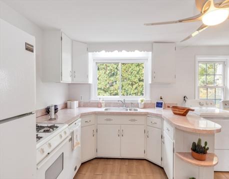 A great way to start your homeownership in a Cozy, Comfortable Cape at the top of Fairmount Hill. A newly painted interior & Shining hardwood floors. A fireplace for friends & family to gather around! The retro style kitchen is a great place for cooking and conversation (while imaging a new revitalized space). AND First floor flexible use space... an in-law area w/access to a bath? An office/den for at home office? Use as you need and appreciate the bright environment that was made ready for you. The two additional rooms on the 2nd level are as nicely renovated as the first. The breezeway off the kitchen leads to a cool space (formerly a garage). This versatile area can be customized for any purpose that fits your lifestyle .. gym/playroom? A large basement houses all the utilities. Enjoy the neighborhood environment, Great restaurants, A theatre w/ professional productions, a performing arts school, 3 comm. rail lines & the blue hills for hiking trails, just a jaunt away .