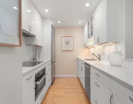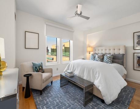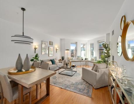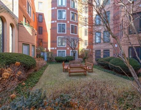 Oversized One bed residence with private terrace at Graham Gund designed Church Court concierge building. The top floor home features a skylit foyer, custom 2017 kitchen with Miele appliances, sleek cabinetry, & quartz counters. The expansive living/dining area features an inviting wide window seat overlooking a beautifully tranquil & lushly landscaped courtyard and Charles River Views. The spacious Primaryv bedroom is a comfortable size with 2 large customized double closets with access to a 2024 spa-like bathroom with an oversized vanity & large shower with custom shower glass door. This is the perfect in-town home & is complete with central A/C, in-unit washer/dryer, a deeded full-size garage parking space & private storage unit. Enjoy warm weather entertaining on your south facing private terrace. This professionally managed building offers 24-hr concierge, elevator & a serene, lush common courtyard. High walkability to Newbury St. shops/restaurants/Esplanade/MIT & BU.
