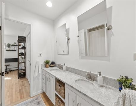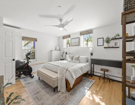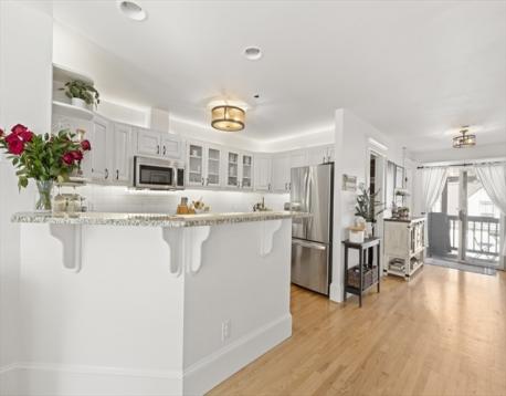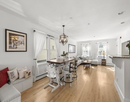 Welcome to this lovely 2 bedroom, 2 bath duplex that checks the boxes. The entry level is filled with natural light and anchored by gleaming hardwoods, creating an inviting open layout ideal for entertaining or relaxing. The kitchen is a true highlight with granite counters, a breakfast bar, built-in wine rack, stainless appliances, custom accent lighting and a gas range for serious cooking. Off the main level, step out to your private deck and enjoy fresh air in the heart of South Boston. Downstairs, two spacious bedrooms easily fit king beds and each offers a full wall of closet storage. The Jack & Jill bath serves as a private retreat, featuring a double vanity, linen storage, and tub. Practical touches abound: full-size laundry room, mini split system, and thoughtful finishes throughout. Set in a prime location near the Heights, beaches, restaurants, shops, and transit, this home delivers the South Boston lifestyle at its best.