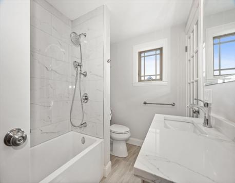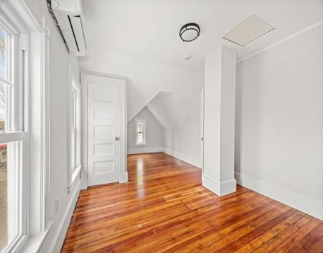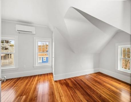 This beautifully renovated 3-bedroom, two-level condominium offers a blend of modern design and comfortable living in a desirable cul-de-sac location. Spanning two floors, the layout provides a natural separation of living and private spaces. The home features hardwood floors throughout and an open living area anchored by a large kitchen island with glistening veined quartz countertops. All-new cabinetry and stainless steel appliances complete the clean, contemporary kitchen. Enjoy year-round comfort with a 4-zone heating and cooling system, allowing individualized climate control throughout the home. The tiled bathroom includes a skylit shower that brings in soft natural light. Additional highlights include open double-door closets, a private deck area, and treetop views that enhance the home’s calm, residential feel. Conveniently located near the Arboretum, Forest Hills Station, and a variety of shops and restaurants, the property offers both accessibility and a pleasant neighborhood