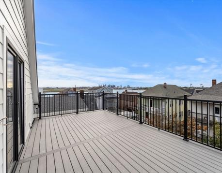 Welcome to 5 Nancia St, Unit 2 — a stunning NEW CONSTRUCTION condo in the heart of East Boston offering over 1,600 square feet of modern living space across two levels. This 3-bedroom, 3 full bathroom home blends contemporary design with thoughtful functionality. The main level features an open-concept living area, a designer kitchen featuring custom cabinetry, GE Cafe appliances & quartz countertops with access to your FIRST private deck—perfect for entertaining or enjoying morning coffee. Two good sized bedrooms on the first floor as well as the 2 full bathrooms featuring tastefully chosen fixtures and tile! The entire third floor is dedicated to the primary suite, complete with a second living room, a spa-like bathroom, and a 200-square-foot private deck showcasing breathtaking ocean and city skyline views. Complete with garage parking & additional green space, this unit is ONE OF A KIND!