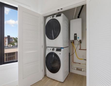 Welcome to 50 Leo, Brighton’s new standard for modern condominium living. Nestled along the city’s booming western corridor near Boston Landing, Arsenal Yards, Charles River Speedway, and Harvard’s research campus, this landmark community is fully amenitized inside and out. Overlooking a park with sweeping river and skyline views, this 1BD/1BA, 708 SF home offers an open-plan living room with floor-to-ceiling windows, a chef’s kitchen with custom cabinetry, Fisher & Paykel appliances, Bosch dishwasher, and Calacatta quartz counters. The spa-like bath features marble tile, custom vanity, and brass Brizo fixtures. White oak floors and in-unit laundry. Residents enjoy WiFi co-working, private work pods, fitness center, rooftop lounge & deck with grilling station, pet spa, dog run, and package room. Deeded garage parking with EV upgrade option. Just minutes to Downtown Boston & Cambridge. Vacant and easy to show.