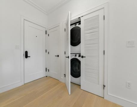 2021 New Construction. Close to proximity to Harvard Business School, Boston Landing & Arsenal Yards. 5th Floor "SOUTH FACING" 2 Bedroom, 2 Bathroom, 910 SF with Private Outdoor Space & 2 Garage Parking Included. Step Outside, Large Terrace Overlooks a Park & City Skyline Views beyond. In unit W/D & Central A/C. Chefs Kitchen has custom Cabinetry, Quartz Counters/Island & Paneled Appliances. Spa-like Baths have Marble Tile, brass Brizo fixtures & designer lighting. 50 Leo is "Fully Amenitized" inside & out. 50 Leo is a Professionally Managed "Boutique Condo Building" with 49 condos. Building Amenities Fitness Center, Resident Lounge, & Resident Lounge leads to Common Roof Deck with Grilling Station and Sweeping City Views! WIFI Co-Working, Private Work Pods. Pet friendly with Pet Wash & Dog Run. Package room w/ refrigerated grocery storage. Steps to Charles River. Run, Bike, Stroll, Canoe or Kayak. Short distance to I-90 or Storrow Drive, directly into Downtown Boston & Cambridge.