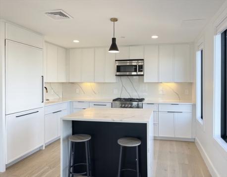 Experience modern luxury in this CORNER 1BD, 1BA + Balcony&Garage Parking at 50 LEO, 2021 Construction at the crossroads of Boston Landing&Watertown. Well-appointed interior boasts a spacious chef's kitchen w/custom cabinets, Fisher Paykel Apps, Bosch Dishwasher&Calcatta Quartz Counters w/Waterfall Edge Island. Entertain in the open-plan living area leading to a private balcony. Relax in the spa-like Bath w/custom vanity, marble tile&brass fixtures. In-unit laundry&engineered White Oak hardwood fls complete the home. Enjoy access to an array of amenities, incl. co-working/private work pods, fitness room, rooftop lounge w/adjacent roof deck w/grills, pet spa&dog run. This stylish condo is conveniently located near acclaimed shops, dining&entertainment at Boston Landing, Arsenal Yards, Charles River Speedway, Roche Bros Grocery, Trader Joes, Star Market, Road Runner&more. Minutes to Downtown w/easy access to the Commuter Rail, I-90 MA, Storrow Dr. Easy access to Harvard Business School.