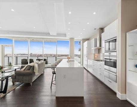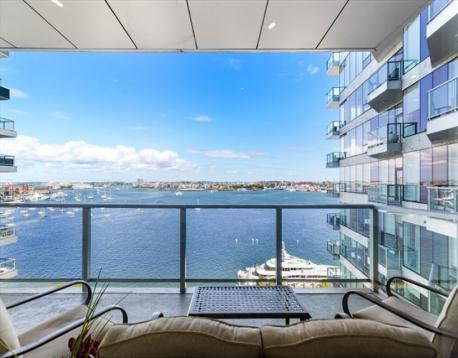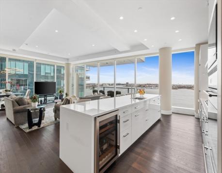 Experience luxury living in this one-of-a-kind,rarely available K-Unit residence on the 10th floor at 50 Liberty Drive with direct water views.This premier front-facing stunning 2 Bed+Den,corner unit offers 11ft-ceilings with waterfront views of Boston Harbor Waterfront through expansive floor-to-ceiling windows in every room creating breathtaking ambiance.The open floor plan showcases,large waterfall island with custom high-gloss white lacquer cabinetry,Sub-Zero refrigerator,wine chiller,Miele dishwasher,Wolf stovetop&wall oven.Spacious living/dining flows seamlessly to a large private terrace,providing views of the Harbor perfect for relaxation.Primary bedroom features a gorgeous en-suite bathroom,2-custom walk-in closets.2nd bedroom features en-suite bathroom&2 closets.Plus Den/guest room,2 garage parking spaces&storage.Amenities include 24 hour concierge/doorman,fitness center,boardroom,club room with waterfront terrace.Located near Seaports finest restaurants,cafes,shops,Airport
