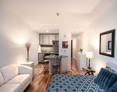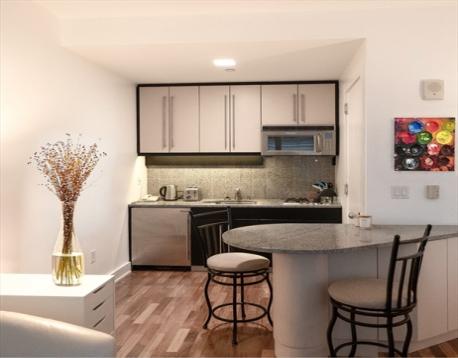 Welcome to the Residences at the Intercontinental, 15Q. Come inside this bright and open studio in the heart of Boston, on the waterfront, close to everything you might need; shopping, South Station, Seaport, Financial District, etc. hardwood floors throughout, a well-designed eat-in kitchen with a granite island countertop, white upper cabinetry, darker lower cabinets, tile backsplash and stainless steel appliances. The bathroom is spacious and equipped with a luxurious bathtub and a large, well-illuminated vanity. The unit has with large, deep closets: one in the hallway, and another in the kitchen. The wide windows offer partial water and skyline views of one of the Northeast’s most vibrant and entertaining cities. The Residents enjoy 24/7 concierge, and access to hotel housekeeping, grooming services, restaurants, spa and health club. The Residences at the Intercontinental is a pet friendly building as well!
