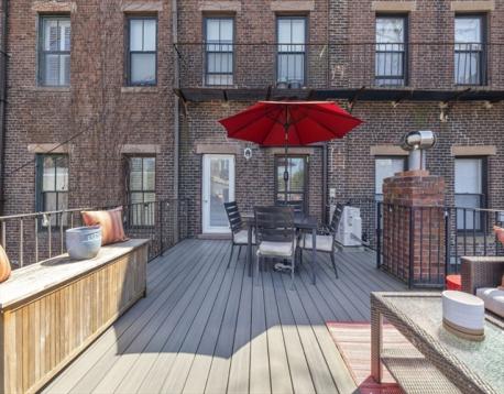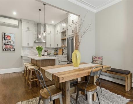 Introducing 505 Shawmut Ave #2 in Boston's coveted South End neighborhood. On a tree-lined and restaurant-filled street, this brownstone is the epitome of Boston city living. As you enter, you are greeted by the unit's dramatic ceiling height & a brand new kitchen with island, stainless steel appliances, and full-height cabinetry extending to the ceiling. This unit's open concept layout allows easy transition into the dining & living spaces highlighted by the decorative fireplace and the abundance of natural sunlight that shines on the refinished hardwood floors. The secondary bedroom with large closet can be found beyond the barn door. In the back of the unit, a full bath with exterior window and oversized hallway closet can be found leading to the large primary bedroom. Installed mini-split systems for cooling & additional heating. Perfect for morning coffee or entertaining, step outside to your own private 300sqft deck, overlooking Boston's skyline. Make this your next home!