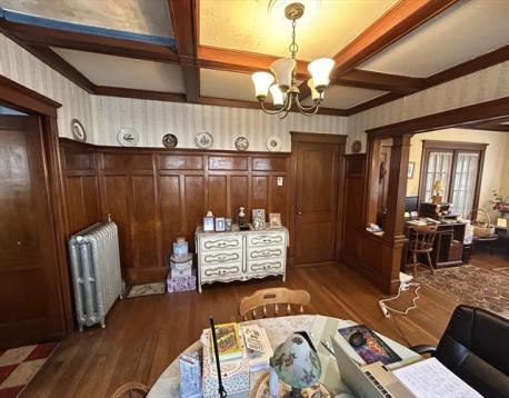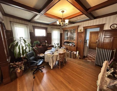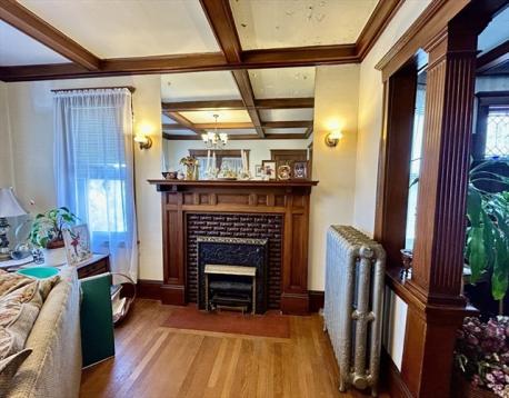 Bring this sophisticated beauty back to her glory!!! This distinguished two-family home with its impressive architecture features beautiful natural wood work, ornate gas fireplaces, beamed ceilings, wainscoting with plate rails, beautiful leaded glass, large built-in hutches, and hardwood floor throughout both units. This home needs work, but has so much potential and offers outstanding bones and timeless character. Conveniently located near major highways and a short walk to public transportation, shopping, restaurants and more. Bring your ideas they just don't make them like this anymore!!!
