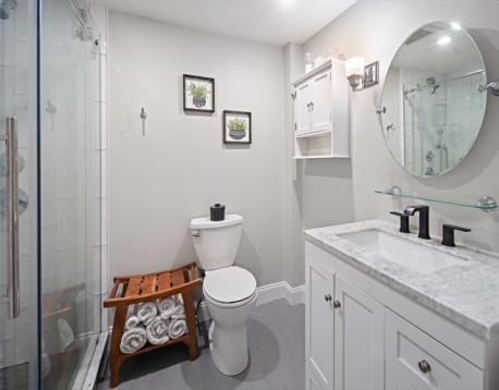 Tucked along a quiet picturesque tree-lined street, this oversized 1 BR/1.5 BA condo offers flexibility and space. Thoughtfully arranged across two levels, the duplex layout creates a natural separation between living and sleeping spaces that feel both expansive and intimate. The main level features an open concept kitchen/living room area with condo finishes. Just off the kitchen, a sprawling private patio becomes an extension of the home, perfect for summer dinners, morning coffee, or evenings gathered with friends. A half bath right off the kitchen, perfect for guests, complete this level. Downstairs, the bedroom serves as a serene sanctuary, complete with a generous walk-in closet and a full en-suite bathroom. Set in the middle of Charlestown, this central location offers the best of both worlds: a quiet residential street in a charming brick row house while being moments away from Waverly, Main Street, the Monument and more.