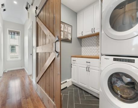 Just one block from Medal of Honor Park, this stylish 2-bedroom, 2-bath condo offers the perfect South Boston lifestyle. The bright, open layout features a modern kitchen with ample cabinetry, a large island, and stainless steel appliances that flow into a spacious living area with high ceilings and hardwood floors. A private deck extends the living space outdoors, ideal for relaxing or hosting friends. The two bedrooms are located in the rear of the home and are great size with two south facing windows. Both bathrooms have been tastefully renovated including a walk in glass shower in the primary bathroom. The rarity of this home is the laundry room with great storage space! New split systems were added in 2024. Set in the heart of City Point, you’ll enjoy easy access to Castle Island, the beach, parks, and South Boston’s lively restaurant scene. Combining comfort, convenience, and contemporary style, this home is not to be missed.