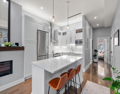 Sophisticated Chandler Street 2 bed/1 bath with open concept living that flows from the living room to the kitchen and dining room. The recent renovation left no detail undone. The custom kitchen island has seating for two bar stools, high end appliance package, white wood cabinets and quartz countertops. The living area features a 10’ ceilings, 4 oversized windows, hardwood floors and an electric fireplace with heater function. The primary bedroom has a large built-in closet and 2 large windows that face the courtyard. Additional features include central heat and central AC, in unit laundry, and private storage. Located in the highly desirable Golden Triangle of the South End, close to Copley Sq, Back Bay Station, and all the amenities of the South End!