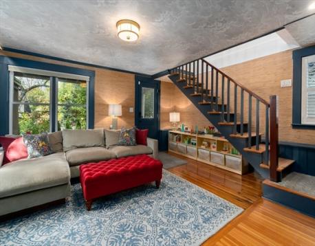 Steps to the Arboretum, come dwell in this architecturally renovated story-book home with distinctive finishes and brimming with charm & beauty. Beyond the picket fence and flowering garden beds, enter this airy and light-filled home. The expansive living room and dining room flow seamlessly into the inviting cook’s kitchen. Just beyond, a bucolic deck nestles among the treetops. Sleeping quarters above boast a captivating primary suite replete with cathedral ceiling, plentiful views of trees & sky and a sparkling tile bath, plus 2 additional bedrooms and another full bath. The lower level comprises an exceptional retreat in stone with a fire for warmth, a wall of built-in bookshelves and an entree to the covered patio and verdant yard, including a mini-suite with its own spacious tile bath and laundry. Easy access to Jamaica Plain’s other natural wonders, shops, cultural pleasures and vibrant restaurant scene. A pristine jewel nearby the Emerald Necklace.