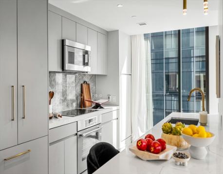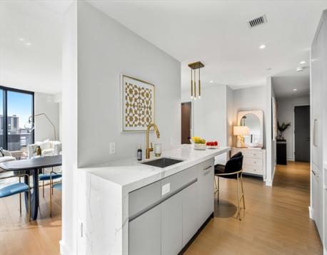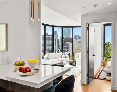 Be the first to call this thoughtfully designed 2 bed 2 bath home. One of Boston’s premier new luxury residences, The Parker is perfectly positioned in the Theater District, just moments from Boston Common, the Public Garden, MBTA lines, Downtown, Back Bay, and more. Inside residence 1902, corner floor-to-ceiling windows fill the space with natural light, sweeping city views charm the living room, and wide-plank white oak floors add warmth and sophistication. The kitchen features a custom Italian marble backsplash, brass accents, and a mix of materials and textures, creating a sleek, modern aesthetic. Residents enjoy the convenience and security of a 24-hour concierge, a state-of-the-art fitness center by Gronk Fitness, and a spectacular rooftop deck showcasing panoramic city views. Curated by Zarifi Design, the building’s speakeasy-inspired amenities include a stylish cocktail lounge, private screening room, and refined indoor-outdoor entertaining spaces.
