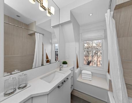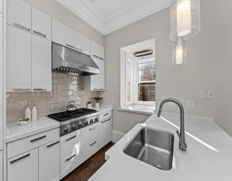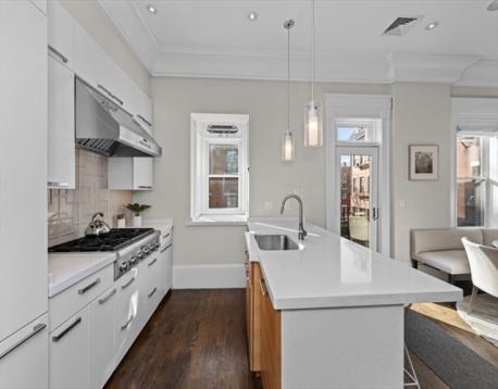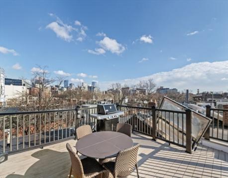 SHOWINGS START IMMEDIATELY. Penthouse bi-level unit with 3 exposures gets morning sunshine to the front, afternoon sunshine to the rear. Main floor has a high quality, efficient kitchen with Thermodore appliances including 6 burner gas cooktop and 256 bottle wine chiller, private balcony with water, electricity & gas, sleek powder room, comfy study, spacious sunny living room with gas fireplace - all this with 10 foot ceilings. The upper floor has 3 bedrooms where the primary bedroom has designer ensuite bathroom with radiant floor heat, large walk-in shower & Biobidet toilet, plentiful closet space with a custom drawer storage unit with a hideaway for laundry baskets. This floor has a guest bathroom and laundry closet with Figidaire washer and dryer. A full stairs leads you to the large roof-deck with gas BBQ grill, water & electricity. There is a high efficiency tankless water heater and rooftop HVAC equipment (replaced in 2024). Garage rental/purchase options are available nearby.