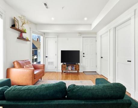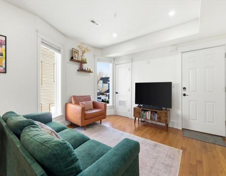 Remarkable and fully remodeled 2 bedroom/2 bath residence in the heart of Dorchester Center. Part of a sleek 2022 condo conversion, this home perfectly blends high end finishes and unique features throughout. The well crafted open kitchen serves as the centerpiece of the home, offering creative touches, including a matte gold stainless steel farmhouse sink with matching fixtures and a large center island that flows seamlessly into a spacious living area highlighted by picture frame windows. Both full bathrooms boast contemporary designs, including a private ensuite for the primary bedroom. The unit is also equipped with central heating and air conditioning, in-unit laundry, and a tankless hot water system. Two private decks (front and back) and an expansive common backyard complete this wonderful home.