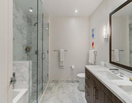 Welcome to Millennium Place, a premier full-service residence steps from Boston Common and the Theater District. This 3-bed, 3-full-bath home offers over 1,500 square feet of open living space with striking skyline views, including the neighboring Millennium Tower, framed by floor-to-ceiling windows. The primary suite features a marble bath with dual vanity, soaking tub, and walk-in shower; the second bedroom includes its own ensuite bath; and the third bath sits just off the guest bedroom, with all three offering beautiful stand-up showers and marble accents. Additional conveniences include an in-unit washer and dryer. Reasonable condo fees cover heat, hot water, access to the club room and gym, and one valet parking space in the heated garage, with extra storage available for rent. Residents also enjoy 24/7 concierge service, a screening room, and a lounge with fireplace and complimentary tea and coffee—a standout opportunity in one of Boston’s finest residential communities.