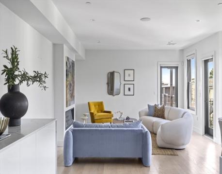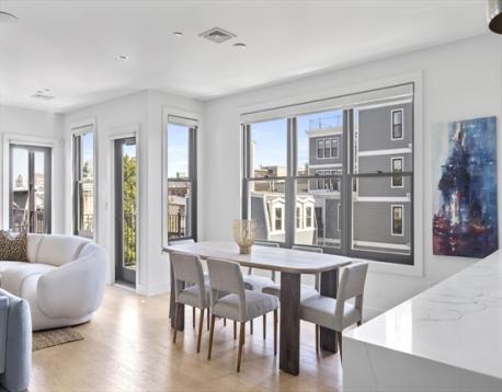 Welcome to this stunning 3-bedroom, 2-bathroom PENTHOUSE located at 586 East 3rd Street, in the heart of South Boston. Boasting a generous 1911 square feet, this modern, automated home offers a wealth of desirable amenities. Step inside to discover a sleek chef's kitchen with waterfall quartz counters, crisp Italian cabinetry, and Thermador/Wolf appliances perfect for culinary enthusiasts. The open-concept living area features oversized windows, high ceilings, sleek fireplace, and Sonos throughout creating an inviting space for relaxation or entertaining. Retreat to the primary suite, complete with a luxurious ensuite bathroom and custom closet. Enjoy the convenience of in-unit washer/dryer, central AC, Hunter Douglas Automated shades and TWO assigned covered parking spaces. Step outside to grill on the balcony or take in beautiful city views while unwinding from the private roof deck.