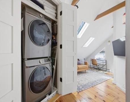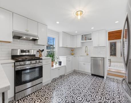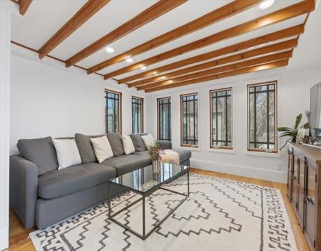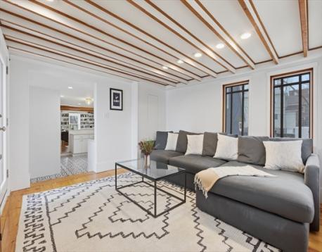 Perfectly situated in highly desirable Adams Village, this exceptional duplex offers a seamless blend of timeless charm, generous living space, & thoughtful modern updates.The inviting open-concept living/dining area sets the tone with beautiful exposed beams, handsome built-in bookshelves, & decorative fireplace.The flow continues effortlessly into a spacious, well-appointed kitchen featuring gas cooking, quartz countertops,& SS appliances. Just beyond, a stunning family room showcases dramatic windows & direct access to one of two private decks, offering an indoor-outdoor lifestyle. The first level is complete with a full bath & guest bedroom.Upstairs, you’ll find two generously sized bedrooms,full bath w/ a glass-enclosed shower enhances the second level, along w/ an additional den/family room that opens to an expansive second private deck.Just moments from the shops of Adams Village, this residence blends city convenience w/ neighborhood charm,offering easy access to I93 & transit.
