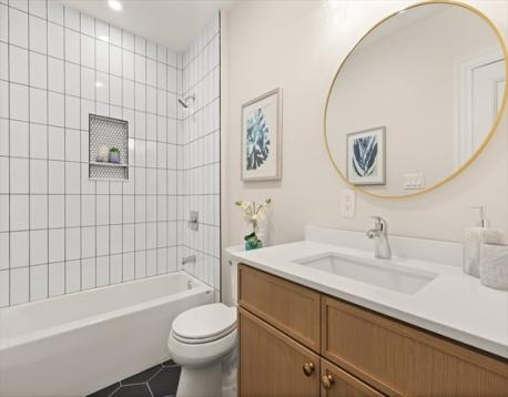 New high quality renovation on quiet street in great location!!! Fabulous brand new kitchen with plenty of soft close cabinetry and large quartz island, perfect for food prep. Ideal for the aspiring chef! 9 foot ceilings and ample windows provide sunfilled rooms! Open floorplan. New pristine tiled baths in neutral colors. New electric,plumbing,insulation,HVAC,windows. W/D in unit. Central A/C. Beautiful hardwood floors. Lovely original woodwork with detailed moldings. Elegant crown molding! Recessed LED lighting. Ample closet space. Quality workmanship throughout!!! Chill out on one of your two decks. Custom built cubby/shoerack in foyer. Massive private storage area in basement. 2 minute walk to the serene 281 acre Arnold Arboretum, a pertfect spot to just get away!! Forest Hills T stop is around the corner, be downtown in minutes!! Walk to JP's many vibrant shops and bistros!! Convenient to Longwood Medical Area. Compare to new construction. Amazing value!!