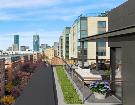 The Residences at 595 Albany, a collection of ten meticulously appointed homes in Boston's South End. This stunning residence offers direct elevator into approx. 1,468sf of open living space, 3 beds, 2.5 baths, a private balcony w/ bi-folding doors, Back Bay views & exquisite attention to detail ensuring optimal proportions & flow. Large oversized windows flood this home w/ an abundance of natural light, highlighting hardwood flooring & premium finishes throughout, including a custom three-tone kitchen w/ top-of-the-line, integrated appliances, calacatta stone countertops & an oversized island. Accompanying the primary suite, a luxurious, four-piece, spa-inspired bathroom w/ a custom double sink vanity & a freestanding tub. Residents will enjoy building amenities which include secured 2N access control, a carefully curated & refined lobby, package storage, a common roof deck w/ a built-in media center, gas fireplace, grilling area & lounge seating all together with city views.
