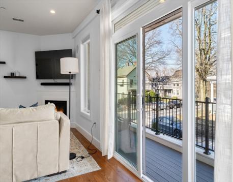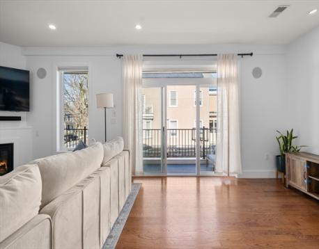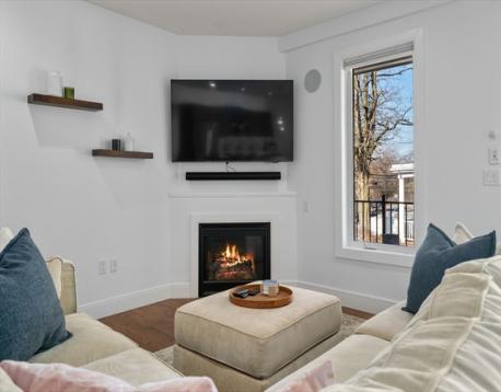 Like-new and move-in ready, this bright corner-unit condo delivers style and convenience. Featuring two bedrooms, two sleek baths, and an open layout with great natural light, the space flows effortlessly from a modern kitchen into a dining area and cozy living room with a gas fireplace. Step outside to your oversized private terrace with a gas line perfect for grilling, hosting, or just unwinding. The primary suite offers a walk-in closet and spa-like bath with double vanity and glass shower. Second bedroom, full bath, and in-unit laundry complete the layout, plus direct access to an oversized garage and private storage. Professionally managed building with a fitness room, smart entry, and a landscaped yard with patio. All set in Claim Point close to parks, the T, Savin Hill, Fields Corner, and great local spots.