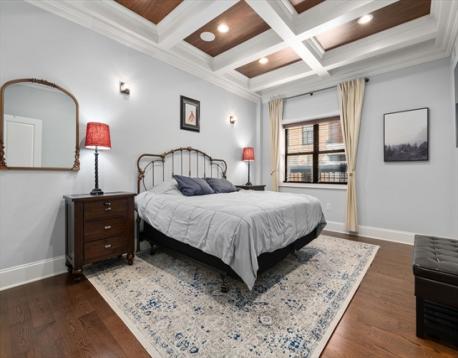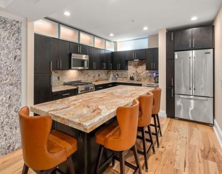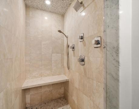 Private entrance duplex in Boston’s iconic North End. This three-bedroom, three-bath home showcases a gourmet kitchen equipped with top-tier appliances and a sleek marble breakfast bar, flowing into a spacious living area with a gas fireplace and dedicated dining space. A hidden speakeasy-style room with a custom bar offers a unique and stylish retreat. The main level also includes a guest bedroom, full bathroom with a steam room, and convenient laundry area. Upstairs, the expansive primary suite features custom California Closets and a luxurious en suite bath complete with Jacuzzi tub. The third bedroom is thoughtfully designed with built-ins, a work-from-home alcove, and access to a full bathroom. Additional highlights include wide pine and walnut flooring, radiant heat, integrated surround sound, central air, attic storage, and a comprehensive security system. Ideally situated near Hanover Street’s renowned restaurants and shops, with access to highways and public transportation.