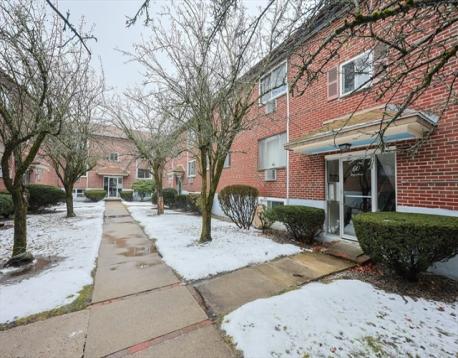 Garden-style condominium at Woodside Condos, circa 1950, offering 2 bedrooms and 1 bathroom with approximately 768 square feet of living space. Brick exterior construction with a functional layout. Condo fee includes heat, hot water, water, sewer, and trash/recycling removal. One deeded parking space plus additional common parking available. Public water and sewer. Convenient Chestnut Hill location with access to local amenities and major routes.