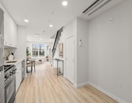 Now is the time to secure your home at The Canterbury. Welcome to Unit 9, a striking new-construction townhome in Boston’s Roslindale neighborhood that pairs modern design with everyday ease. This move-in-ready 2-bedroom, 1.5-bath residence features a well-designed two-level layout, offering bright, open-concept living and dining spaces on the main floor and private bedrooms upstairs for ideal separation. Oversized windows pour in natural light, elevating the clean, contemporary finishes throughout. The kitchen makes a statement with quartz countertops and stainless steel appliances, seamlessly connecting to the living area for effortless everyday living and entertaining. Upstairs, spacious bedrooms provide generous closet space, while the full bath is finished with dual sinks and a rain shower. With abundant storage and two deeded parking spaces, this home delivers both style and convenience— and with only a few residences remaining, this is your opportunity to make it yours.