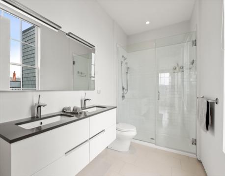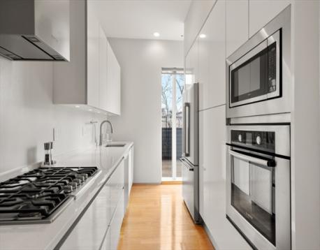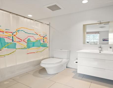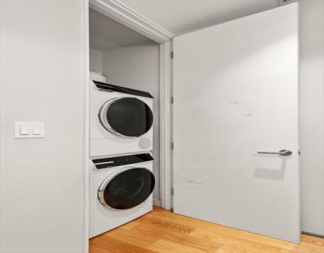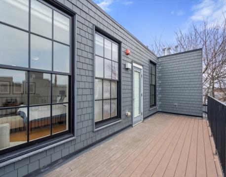 Stunning penthouse duplex offering double-height ceilings and walls of floor-to-ceiling glass that flood this 1,345 SF, 2-bedroom, 2.5-bath home with natural light. The soaring great room flows seamlessly to a private outdoor terrace — perfect for al fresco dining — while a second terrace off the primary bedroom captures skyline views.The chef's kitchen features sleek gloss-white lacquered cabinetry, quartz countertops, and a full Bosch appliance suite with a five-burner gas cooktop, wall oven, and integrated refrigerator. A linear gas fireplace anchors the living room, complemented by wide-plank hardwood floors, built-in bookshelves, and recessed lighting throughout. Includes 2 deeded garage parking spaces. Steps from South Boston's best dining, shops, and transit — an exceptional opportunity to own one of the neighborhood's most architecturally distinctive residences.