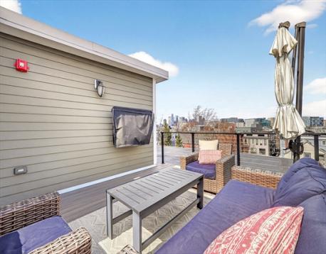 Welcome to this stunning 3 bed, 3 bath duplex-style home with a dedicated office space, deeded 2 car parking, and a private basement. Enjoy breathtaking city and skyline views from the expansive roof deck, perfect for entertaining or unwinding after a long day. The well-appointed kitchen is a dream for those who love to entertain, and the luxurious marble master bath adds a touch of elegance to everyday living.Sprawling across 2190 square feet, this home offers ample space for comfortable living. Its prime location puts you in close proximity to the vibrant restaurants and shopping on E Broadway, while also being just a short distance from the bustling Seaport area.This property is a rare find, combining modern luxury with convenience and style. Don't miss the opportunity to make it yours!