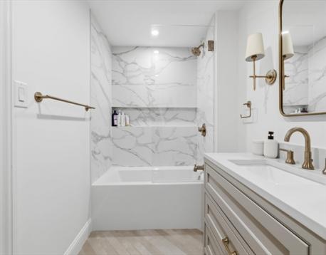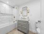 Completed in 2024, 64 Baxter Street offers boutique new construction on the West Side, blending modern design with timeless craftsmanship. Residence #1 is a refined 1,404 sq/ft 2 bed, 2.5 bath home featuring seamless high end open-concept living, dining, and kitchen space that flows to a private deck- ideal for entertaining or everyday living. Wide-plank European white oak floors add warmth throughout, while the custom chef’s kitchen is appointed with milled custom cabinetry, integrated appliances, and clean, modern finishes. A sleek gas fireplace anchors the living area, complemented by custom millwork that adds depth and character. Thoughtfully designed for both comfort and sophistication, this home delivers polished city living with exceptional attention to detail throughout. One garage parking space included, along with a highly desirable layout that maximizes both function and flow. Inquire for specifications and private showings.