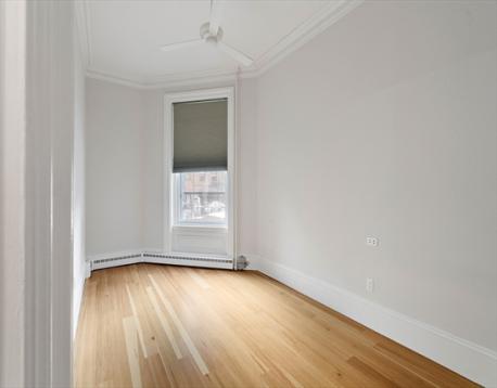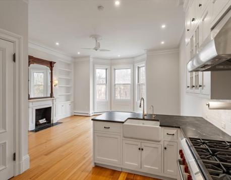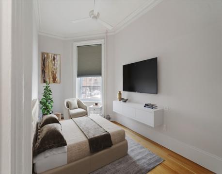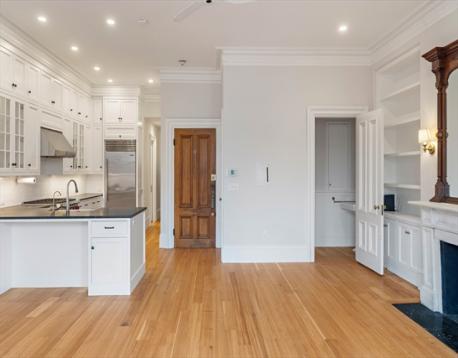 Welcome to this beautifully renovated brownstone residence located on the coveted second block of Commonwealth Avenue. Designed and executed to perfection by FBN Construction, this special 2 bed 1.5 bath residence features panoramic views of the Comm Ave Mall from its iconic front-facing bay window. Soaring ceilings and large windows provide stunning natural light to the open-concept living and dining areas, while a substantial chef's kitchen features Wolf and Sub-Zero appliances, custom cabinets, and high-end finishes. Gorgeous hardwood floors, custom built-ins, marble fireplaces, and crown moldings are found throughout, blending original character with modern functionality. One deeded parking space is included in this rare offering.