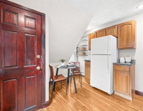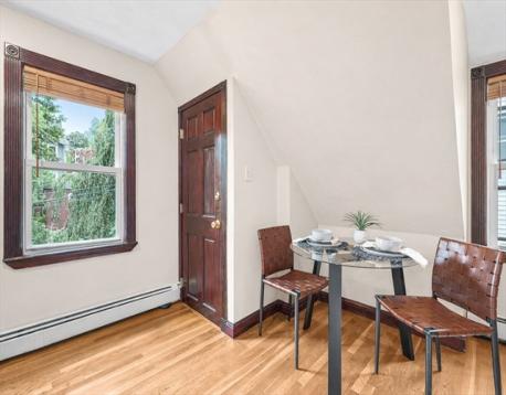 Commuters take notice! Welcome to 64 Hyde Park Avenue, an urban oasis nestled in JP's vibrant Forest Hills. Elevated off the street, this top floor home offers a sense of privacy away from the daily hustle, with peaceful Arboretum treetop views from your primary bed window. 3 bedrooms, an updated tiled bath, abundant closets & finished kneewall storage, hardwood floors, a sunny & bright eat-in kitchen, equipped w/ gas cooking and abundant cabinetry. Enjoy the comfort of gas heat, the convenience of in-unit laundry, a unit that is fully deleaded and a building that is fully insulated. The back yard beckons for summer parties with a level lawn and 2 patio spaces. Bonus basement storage plus additional exclusive laundry machines. Pet friendly association. Located just steps from Forest Hills Station, with easy access to public transportation, ensuring a quick commute to downtown Boston. Close to Southwest Corridor Park and JP's beloved green spaces. Make this home your own.