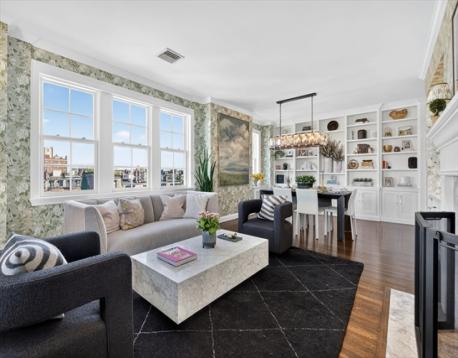 A masterfully reimagined penthouse atop the corner of Comm Ave & Clarendon St. Spanning more than 2,300 sq ft on 1 sunlit level w/ 3 exposures, this residence offers an unrivaled blend of architectural heritage & contemporary sophistication. A grand foyer sets the stage, welcoming you to an expansive living/dining area featuring marble wood-burning fireplace, custom millwork, &sweeping Back Bay views. The designer chef’s kitchen is a true centerpiece, complete w/ top-of-the-line appliances, adjacent butler’s pantry, & statement picture window framing the city skyline.The thoughtfully designed living quarters comprises 4 versatile bedrooms & 3 baths allowing for a range of room functionality. A dramatic primary suite captivates w/ fireplace, walk-in dressing room, private study,& spa-inspired bath w/ radiant heated floors.Exquisite details include luxury wall coverings, tailored built-ins &refined finishes. Addt'l highlights include, an office, pvt storage, central a/c & on-site super
