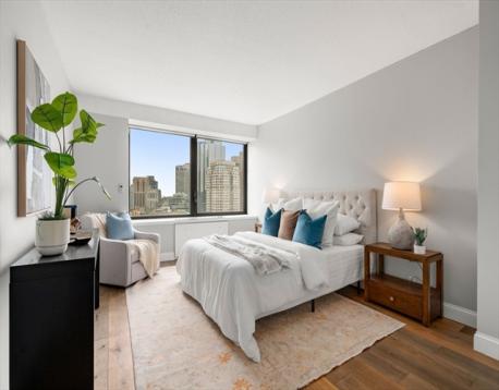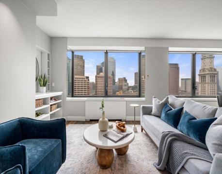 Welcome to Harbor Towers! Sweeping southwest views of the Boston skyline feature prominently throughout this condo. An open concept living & dining room is framed by two large sets of windows, offering fantastic natural light, along with custom built-ins in the media nook. Modern kitchen features gas cooking, stainless steel appliances, granite counters, and a breakfast bar. Generously sized bedroom includes a built-out walk-in closet. Abundant storage space throughout, hardwood floors, central heat & air conditioning, and motorized blinds in the living space and bedroom compliment this home. Harbor Towers offers 24-hour concierge service, gated entry, seasonal in-ground pool with sun deck and BBQ area, and laundry facilities. Just off the Rose Kennedy Greenway, this central location is just steps from Financial District, Seaport, and North End, with easy highway and public transportation access. Rental parking available in the next door Harbor Garage.