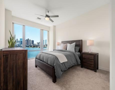 Welcome to the pinnacle of luxury at Slip65 Condominiums, where sleek design meets stunning water and skyline views. Perched on the 5th floor, this front-facing residence boasts dramatic floor-to-ceiling windows and a 15-foot private balcony, offering unobstructed, panoramic views. Inside you'll enjoy an open layout with hardwood floors, a spacious primary suite, in-unit laundry, and the rare convenience of elevator access to two garage parking spots. Slip65 offers a resort-style lifestyle with unmatched amenities: a 24/7 concierge, cutting-edge fitness center, sleek resident lounge with a chef’s kitchen, a sprawling outdoor terrace with grills, a dog park and pet spa, kayak + bike storage, EV chargers, and even boat docks, your direct gateway to the water. With the MBTA Blue Line at Maverick Station and the ferry just steps away, your connection to downtown is effortless. Don’t miss this rare opportunity to own one of East Boston’s most coveted waterfront residences.