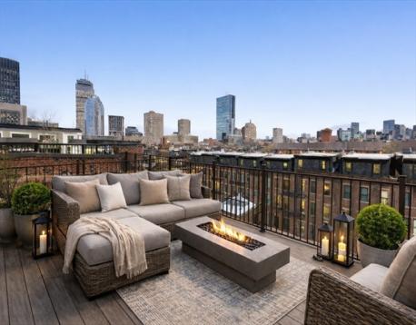 This stunning South End penthouse duplex offers exceptional city living with your own private roof deck oasis. Featuring 2 bedrooms and 2.5 baths, this home showcases updated fixtures, fresh paint, Pella double-pane windows, two-zone Nest thermostats, central air, in-unit laundry, and gas cooking. Bright and airy, boasting hardwood floors, spacious living/dining area with a marble-surround gas fireplace, and a dedicated alcove ideal for a home office. The open kitchen features a breakfast bar, updated stainless steel appliances, custom cabinetry, and ample storage. The upper level features a lovely primary suite with 2 large walk in closets, double vanity en-suite bath with soaking tub and a picture perfect view of the city. Generously sized second bedroom includes a large closet and is served by a well-appointed guest bath with new glass-enclosed shower and washer/dryer. A full-size staircase leads you up to the large, newly-built, composite roof deck with dazzling city views!