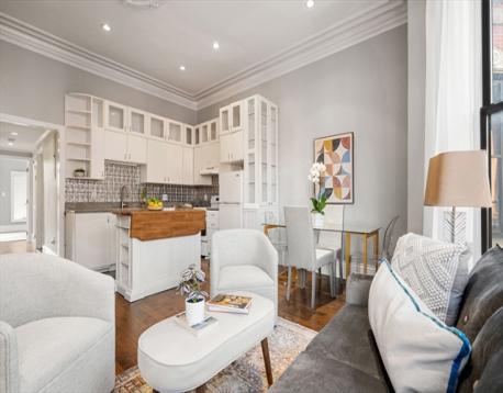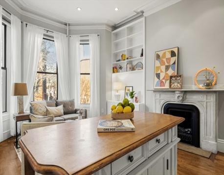 Quintessential Chandler Street condo with high ceilings, an excellent layout and a charming private deck! Located on the 2nd floor of a 3 unit condo building, this floor-through condo features a front facing living / dining room with open concept kitchen. The living area is complemented by a bay window, built-in cabinetry, and a marble mantel fireplace. Newly refinished hardwood flooring done in a warm, walnut tone adds to the style of this ideal unit. An oversized bedroom allows for home-office flexibility due to its exceptional size. The bedroom also offers a fantastic closet and storage, bright South facing sunlight and direct access to a private deck overlooking the quaint architecture of Lawrence Street. Tasteful full bathroom with tumbled marble tile and a large shower. Healthy building reserve, pet friendly, and situated on one of the most desirable streets in all of the South End with close proximity to close restaurants and shops, as well as being central to Boston's Back Bay.