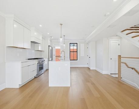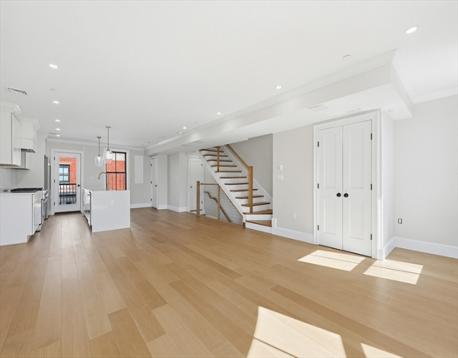 Penthouse 3 bed 2.5 ba w/ 2 decks & private roofdeck in new Construction brownstone in premier South End location! This stunning penthouse duplex features a meticulously designed layout, with a sprawling floor through Living dining kitchen area which flows seamlessly to the back deck. The enormous luxury kitchen features thermador appliances, custom cabinetry w/ 10 ft island & quartz countertops. The living area boasts masterful finish carpentry/millwork & beautiful built ins surrounding the gas FP. The Spacious Primary bedroom features luxurious en suite bath, large walk in closet & Balcony. Two well sized guest bedroom have bathroom conveniently located just off the entrances. The enormous private roofdeck is amazing for entertaining/ dining with gas line & beautiful south end & city skyline views. Premier location in one of the neighborhoods most coveted enclaves & boasting all the quintessential South end charm you could home for! 1 Parking avail for sale - direct behind building