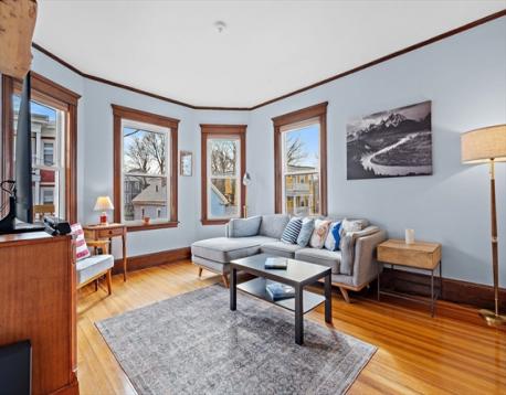 Sun-drenched top-floor condo in the heart of Jamaica Plain offering skyline views and timeless character. This spacious home showcases beautiful period details, including original moldings, a built-in china hutch, and hardwood floors throughout.The updated interior blends charm with modern convenience, featuring a newly renovated bathroom with a walk-in shower and a stainless steel eat-in kitchen perfect for everyday living and entertaining. Enjoy warm weather from both your private front deck and back porch, or relax in the large, usable shared yard—ideal for barbecues and gatherings. This treetop retreat also includes private laundry and dedicated storage. Ideally located near the Arboretum, Centre and South Street shops and restaurants, and Forest Hills Station, offering easy access to everything the neighborhood has to offer.