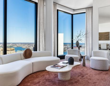 Live above the city at The Ritz-Carlton Residences, South Station Tower. Located within the reimagined South Station district connecting Fort Point to the Greenway, this spectacular corner residence sits approximately 650 feet above Boston and offers sweeping views over Downtown and the Seaport. The 1,805 SF home features three bedrooms and three-and-a-half baths, with an expansive living and dining area framed by floor-to-ceiling windows. The chef’s kitchen is appointed with custom marble countertops, designer appliances, and integrated wine storage. Residents enjoy legendary Ritz-Carlton services and access to an exceptional collection of amenities, including a state-of-the-art fitness center with treatment rooms and saunas, two outdoor terraces, a chef’s kitchen, a 72-foot outdoor swimming pool with Back Bay views, a dramatic double-height library lounge with fireplace, and a game room with sports simulator and bar—perfect for entertaining.