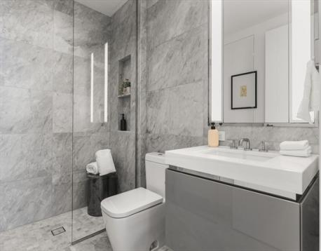 Live Above the Clouds at The Ritz-Carlton Residences, South Station Tower! Located in the reimagined South Station neighborhood, connecting Fort Point to the Greenway, these residences start at an elevation of over 450 feet, overlooking an acre-sized park that is exclusive to South Station Tower. Corner Residence 49H is a 3 BR/3.5 BA floor plan sized at 1805 SF. The spacious living & dining area is adorned with floor-to-ceiling windows, allowing for breathtaking Downtown & Seaport views. The kitchen is outfitted with custom marble countertops, plus designer appliances including wine storage. Residents will have exclusive access to Ritz-Carlton services and amenities, including a fully equipped fitness center with treatment rooms and saunas, 2 outdoor terraces, chef’s kitchen, a 72’ outdoor swimming pool with stunning views of Boston’s Back Bay, a double-height library lounge with a central fireplace, and a game room featuring a sports simulator and bar space perfect for entertaining.