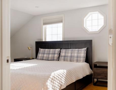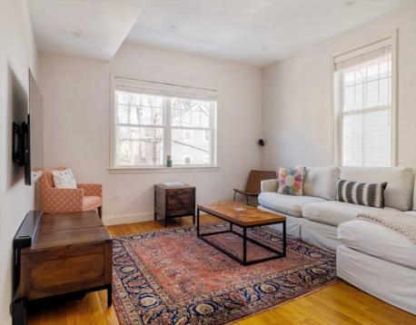 Turnkey, top floor, and just a block from Stony Brook T! This 3-bed, 2-bath upper duplex sits on the stretch of Boylston, where the bike lane curves toward the SW Corridor Park and pedestrians make their way to and from the downtown commute. A private entrance w/ mudroom and exposed brick wall leads up to the clean & bright main level. An oversized living room, dining room w/ french doors, eat-in kitchen has two tone Shaker cabinets, slide-in gas range, vent hood, granite counters & SS appliances, stackable front load laundry, full bath w/ tub, and 2 flex rooms currently serving as office and work out space complete the main flr. Upstairs are 2 larger bedrooms, and a shared full bath w/ slider barn door. The primary bed features two walk-in closets and a charming octagon window. With hardwood floors and recessed lighting throughout, central A/C, and exclusive basement storage. Dream location w/ Little City Feed across the street, blocks from Centre Street, Whole Foods & the Pond.