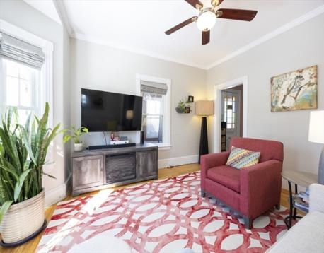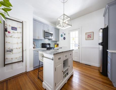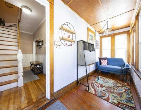 This beautifully maintained home seamlessly blends modern sophistication with timeless elegance, offering a true move in ready experience. Enter through the enclosed three season porch to discover a thoughtfully designed interior featuring high-end finishes, sunsplashed living and dining rooms, and hardwood floors throughout. The gourmet kitchen is complete with premium cabinetry, sleek countertops, large pantry, and an island perfect for both everyday living and entertaining in style. Retreat upstairs to the primary bedroom with generous walk in closet. The two additional bedrooms are both designed for comfort and relaxation. The spa-inspired bathrooms showcase beautiful tiling. The renovated third floor offers a third bedroom & also a flex living space - ideal for your home office or gym. The massive yard is perfect for entertaining and fun. Located just minutes from local amenities, shopping, dining, and major routes.